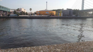 バイトは全くなく、たまたまラインを回収したポイントにキャストしたときにまた何やら根掛した感触でやばいと思いましたがすぐに外れ、今度は仕掛けが回収できました。
