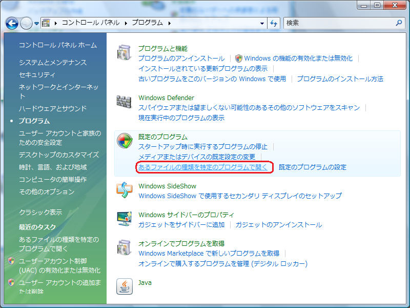 ②「あるファイルの種類を特定のプログラムで開く」をクリック