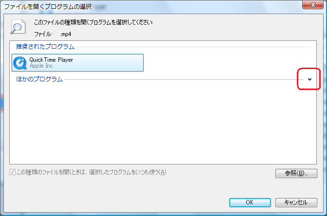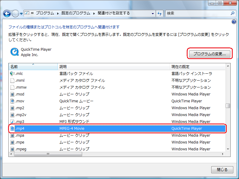 ※Qicktimeが導入されていると拡張子が.mp4のファイルはQicktimeに関連付けされてしまいます。