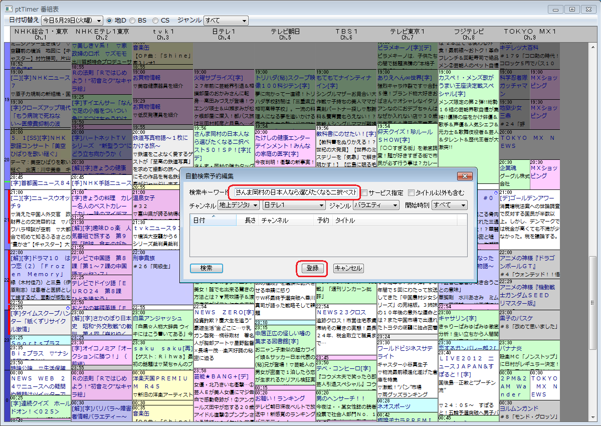 ptTimerの録画する番組の予約登録方法には何通りかあります。
