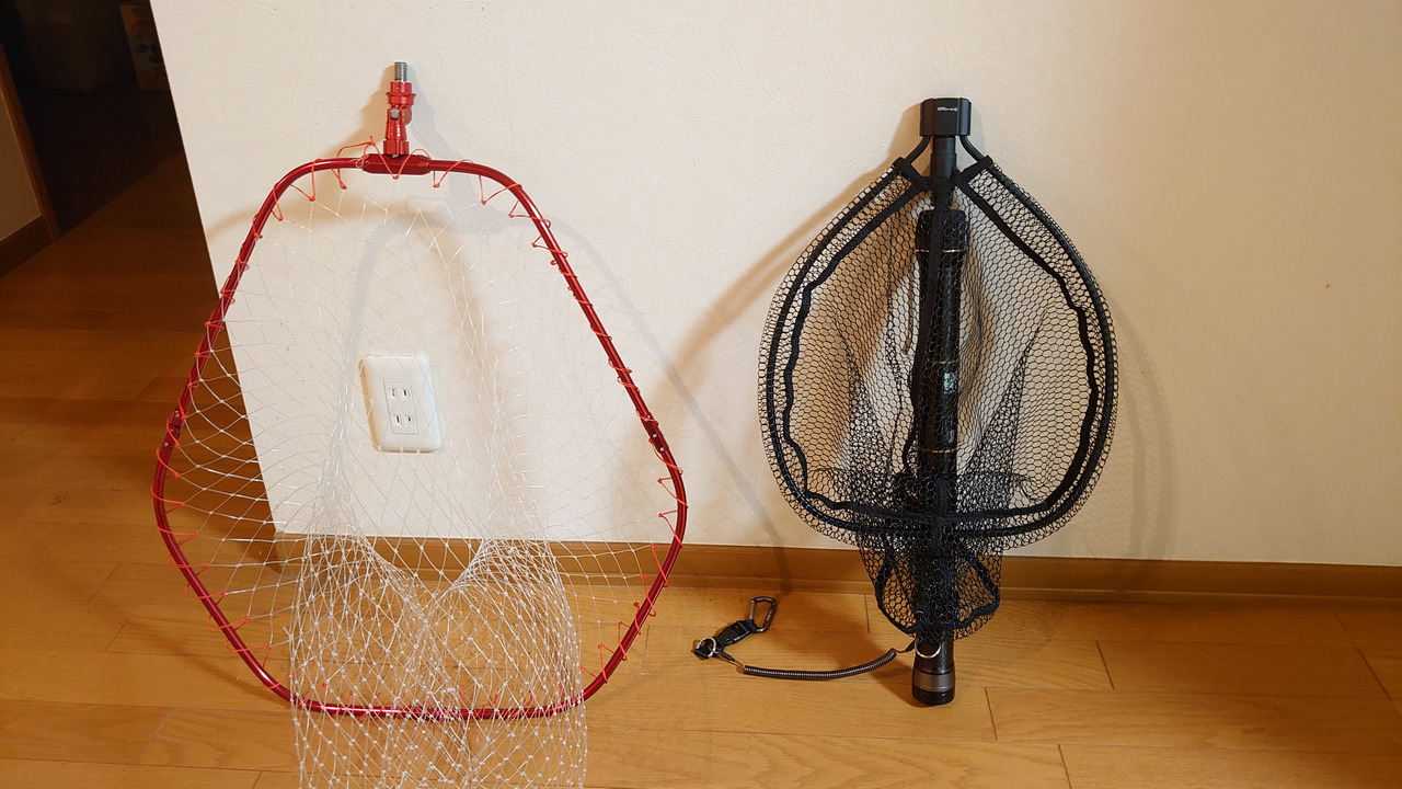 大は小を兼ねるということで60cmくらいの青物でも上げれるように大きめのランディングネットを購入しました。しかし、実際には大きすぎるため自転車釣行で持ち運ぶのが不便で、使わずでした。そこで、ライトゲームで便利そうなサイズのランディングネットに買い替えをしました。