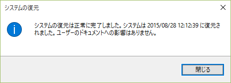 このあと、PCは再起動し選択した復元ポイントの状態で起動します。