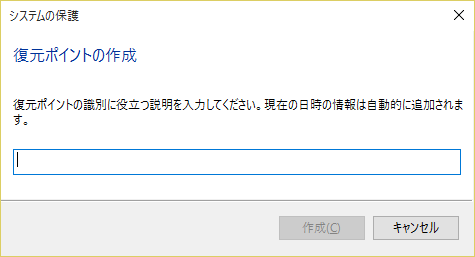 あとは作成をクリックすれば復元ポイントの作成が開始されます。