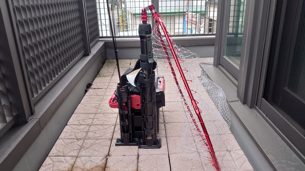 伸ばすと、ロッドのガイドなどにネットが引っかかりロッドを痛めてしまいそうです。