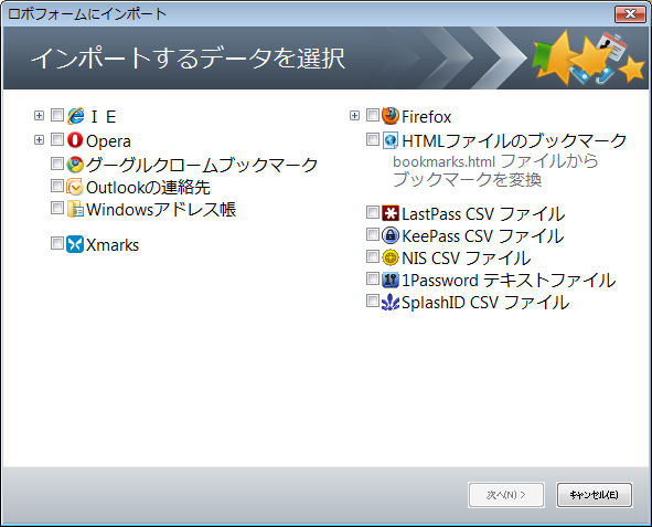 いくつかのパスワード管理ソフトからのインポートには対応していましたが、Info Keeper2からインポートする機能はありませんでしたので、Info Keeper2とRoboFormを起動しておき、Info Keeeper2で順番に各サイトに自動ログインを行い、それをRoboFormに自動保存するという方法でインポートさせました。