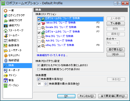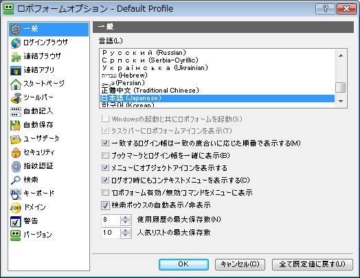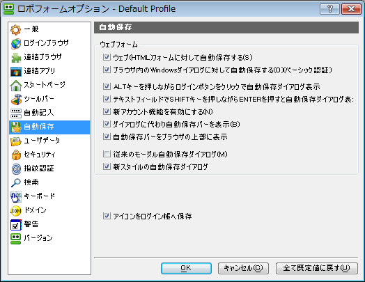 Roboformをブラウザー以外のアプリケーションにアタッチするもしくは除外するアプリケーションに関する設定です。