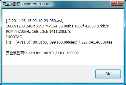 録画ファイルの解析結果です。(※1分の動画)