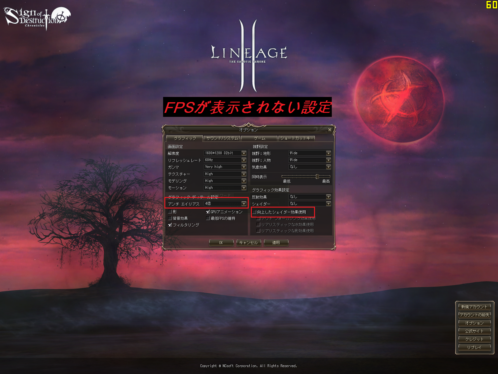 リネージュ2だけFPSが表示されません。