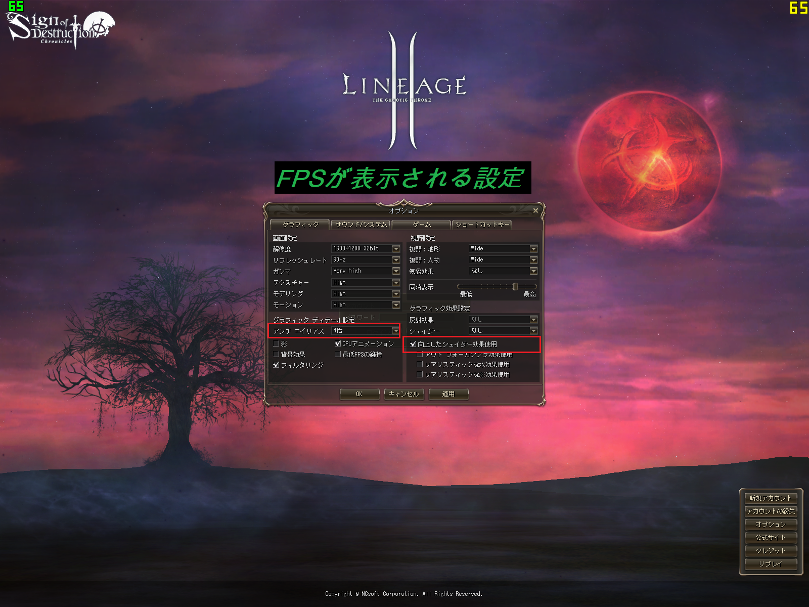 原因はリネージュ2クライアントのグラフィックオプションでした。
