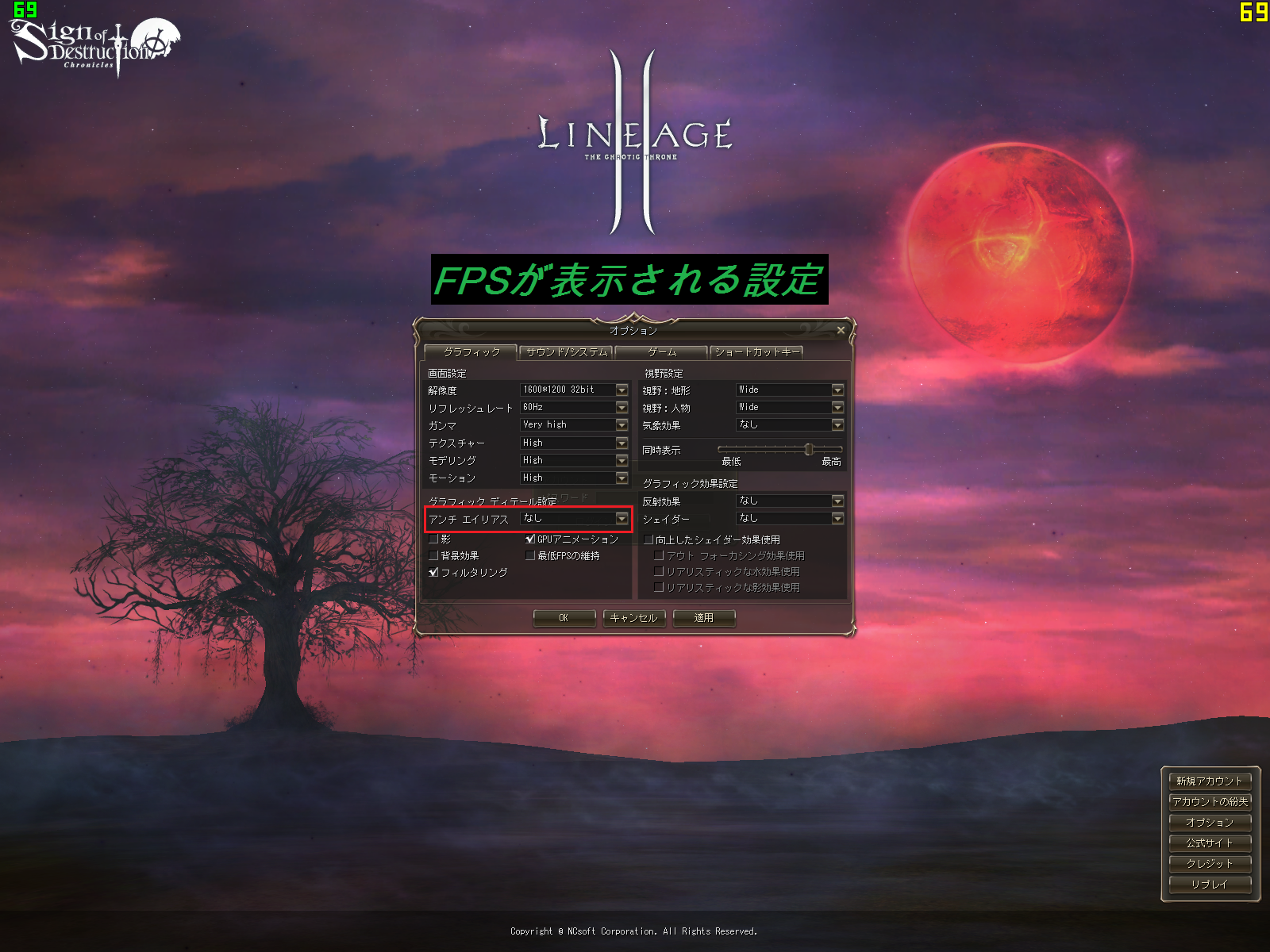 ※リネージュ2設定でアンチエイリアスx4にしています。