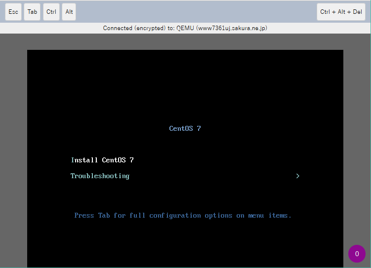 OSインストール用のブートイメージが起動し準備ができるとVNCコンソールの選択メニューが表示されます。
