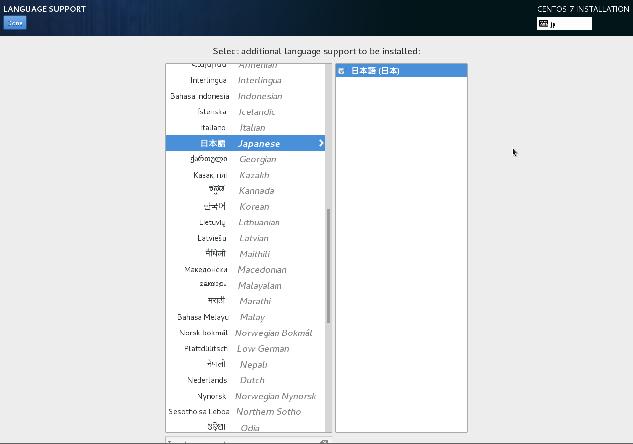 言語選択の既定値は英語のみになっているので日本語を追加しました。