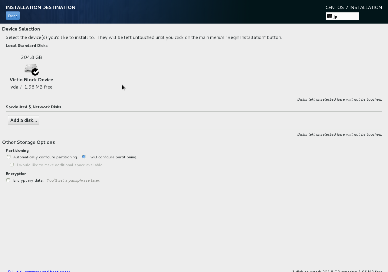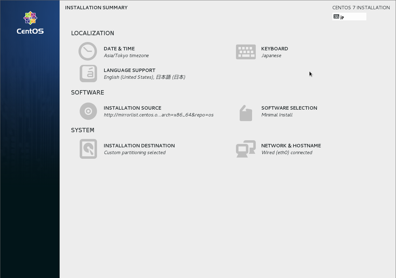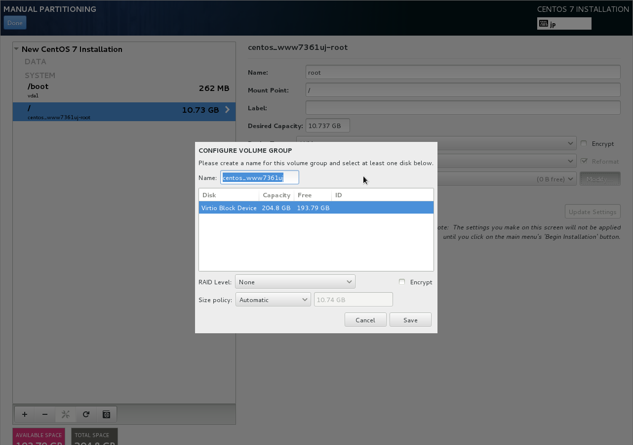 パーティションの設定についてはCentOSのドキュメントを参考にしてください。