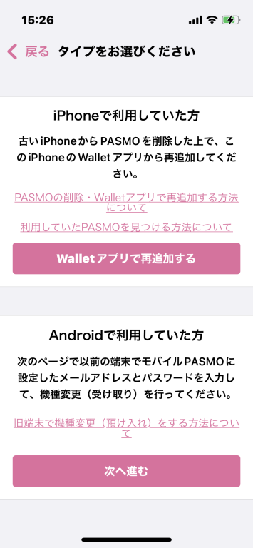 モバイルPASMOの移行もモバイルSuicaと同じでウォレットアプリからカードを削除してから、新iPhoneのウォレットアプリから追加で移行ができます。