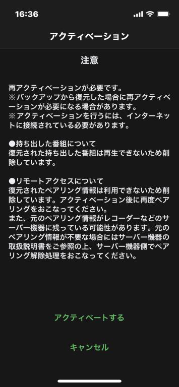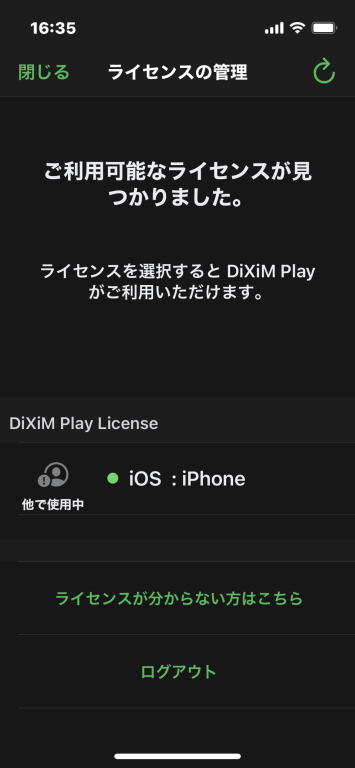 DiXiM Playアプリは、DiXiMアカウントでログインし、有効なライセンスを選択して、アクティベイションが完了すれば利用できるようになります。iPhone 13miniでも問題なくDIGAの録画番組を再生できました。
