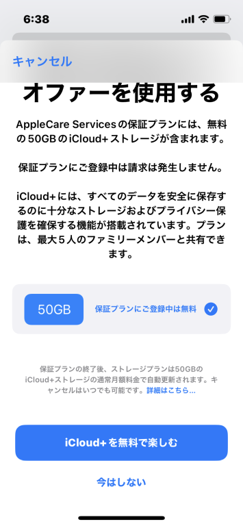 新iPhoneに移行後、オプションサービスの「故障紛失サポート with AppleCare Services & iCloud+」の確認ができませんでした。発信テストを実行後にオファーが届いたように思います。
