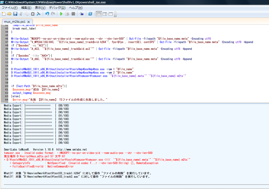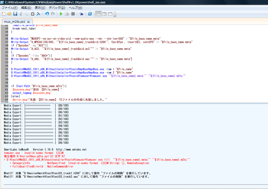根本的な原因はPowerShellとTSmuxerの文字コードの対応状況ということになります。
