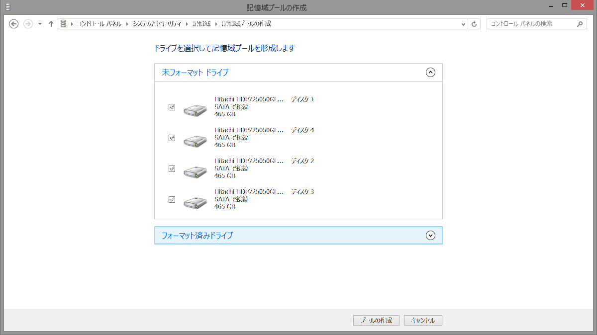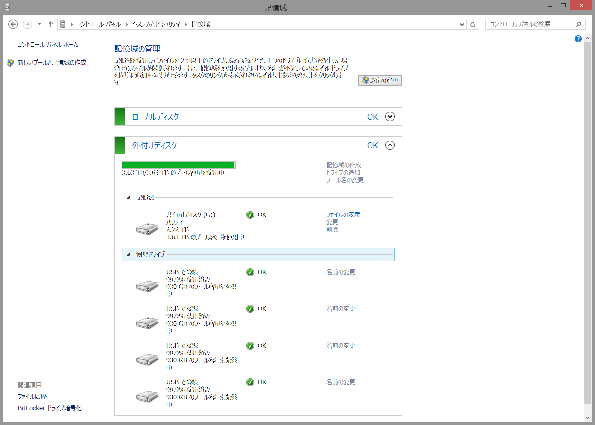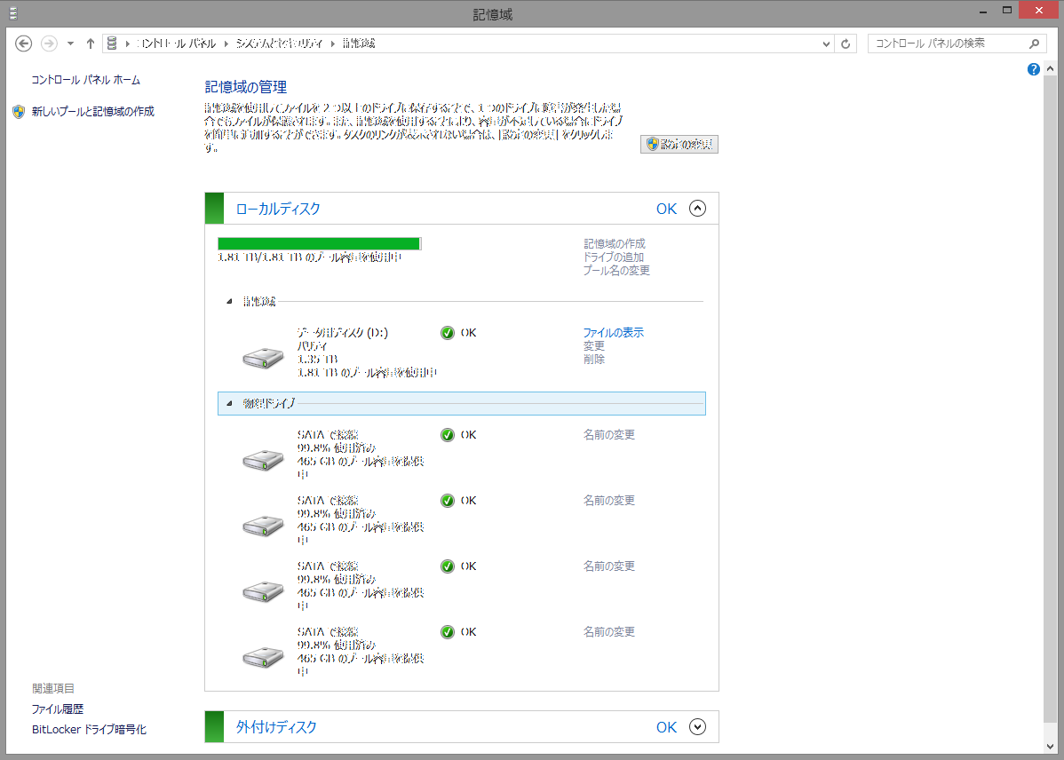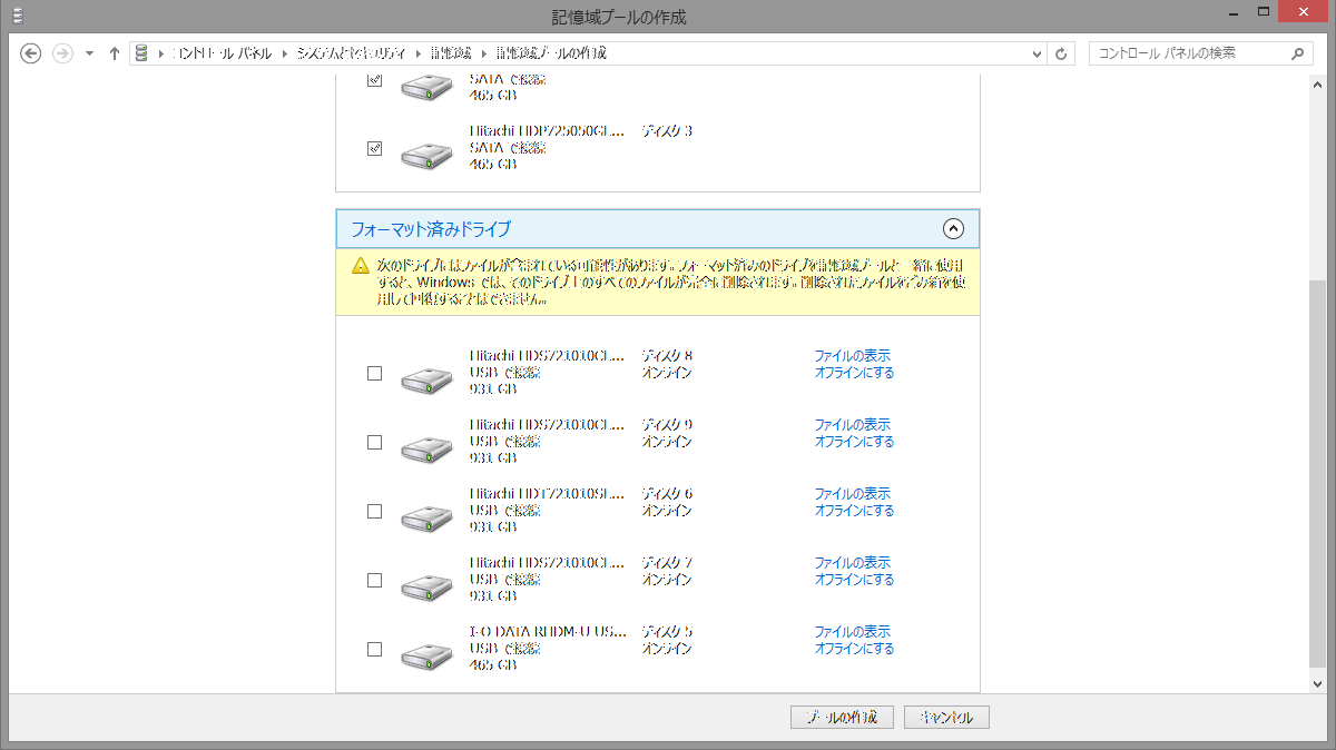 Windows 8の新機能の1つであった記憶域プールですが、いろいろあって作り直しました。