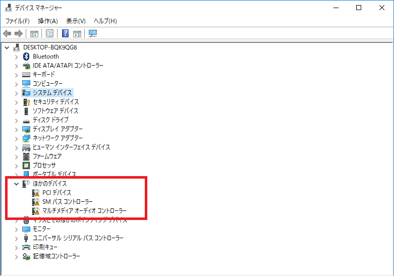 オーディオとカードリーダのデバイスドライバーソフトウェアをインストールすれば「ほかのデバイス」はなくなります。