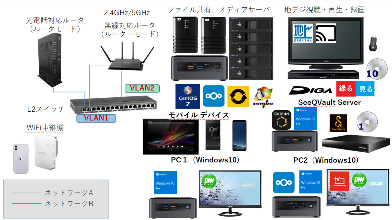 DTCP-IPに関係のない内容もありますが、とりあえず我が家のネットワークに接続している機器の紹介です