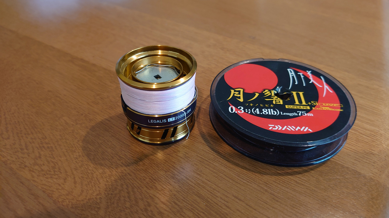 保管には同じラインのスプール(月下美人 月ノ響II+Siの空スプール)に巻けばよかったと後悔しています。