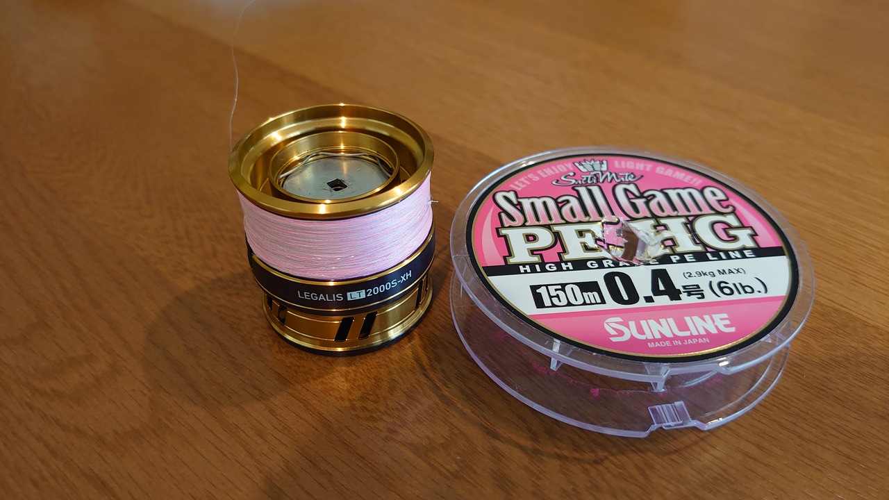 まだキャストが下手な頃に使用していたのもあり、ラインが高切れでかなり短くなったので継ぎ足ししている状態です。ところどころに痛みがみられるため、大きなトラブルが発生する前にこのラインを交換することにしました。PEラインは0.15号と0.4号があれば0.3号は出番がないかとも思って交換することを決定しました。