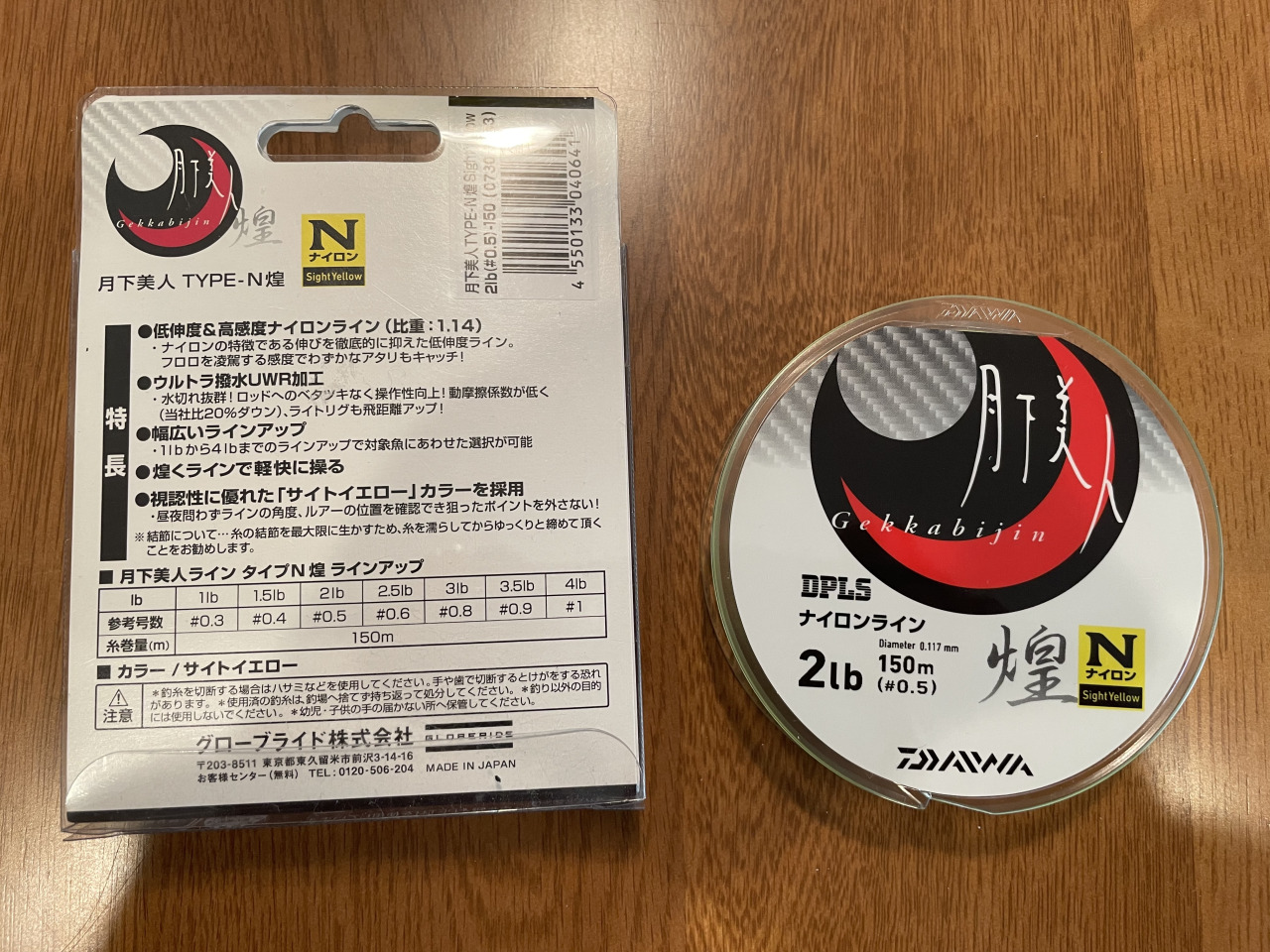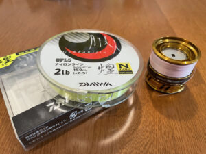今回使用したナイロンラインはダイワ 月下美人 TYPE-N 煌 2lb 150mです。