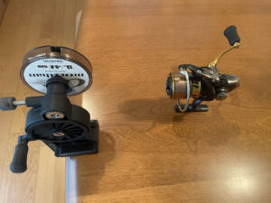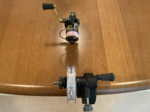 巻き終えたラインを空スプールへ巻替える