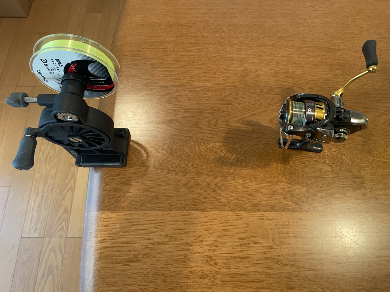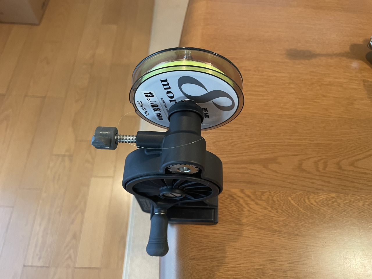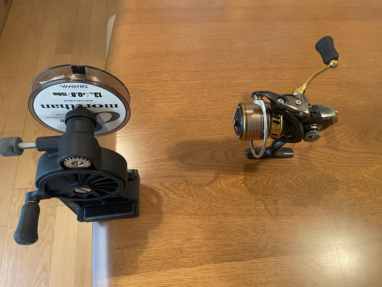 使わなくなったナイロンラインを巻いていたスプールの上に巻き替えました。