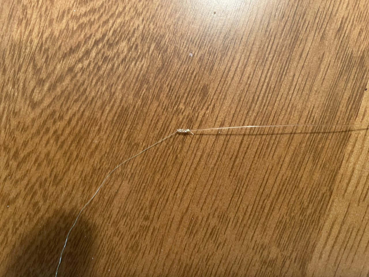 その前に、ラインの結線は電車結びで行いました。両方長いラインの場合ラインを輪っかから抜くような結び方は使えません。