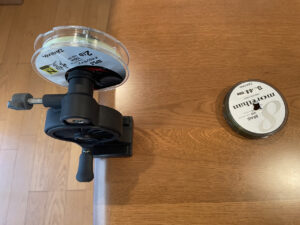メインラインが先になりましたが、このままリールのスプールに巻き替えるとさっきの状態に戻るだけですのでもう一度、空スプールに巻き替えます。使用する空スプールは煌の空スプールを使いました。