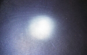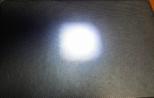 Powerモードでの照射です。中心のある範囲だけ集中して明るく見えていますがその周囲は広範囲に散ってしまっています。