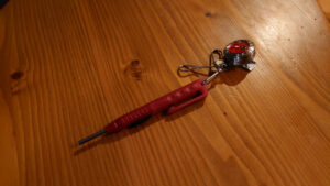 ボタンを約3秒ほど長押しすれば赤色LEDが点灯します。以降、ライトのON/OFFスイッチでは赤色LEDのON/OFFになります。