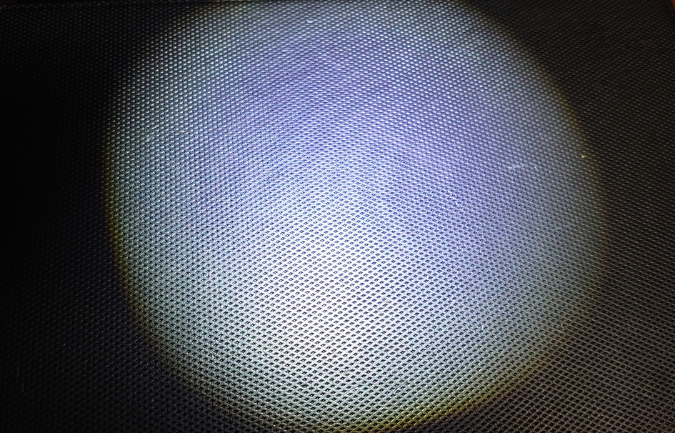 Powerモードでの照射です。中心のある範囲だけ集中して明るく見えていますがその周囲は広範囲に散ってしまっています。