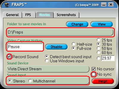 ・動画保存場所を”D:Fraps”に変更。