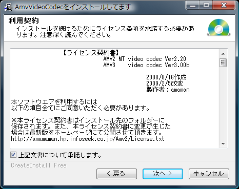 ※アマレココライトではAMV3コーデックが導入されていないと起動できないようです。