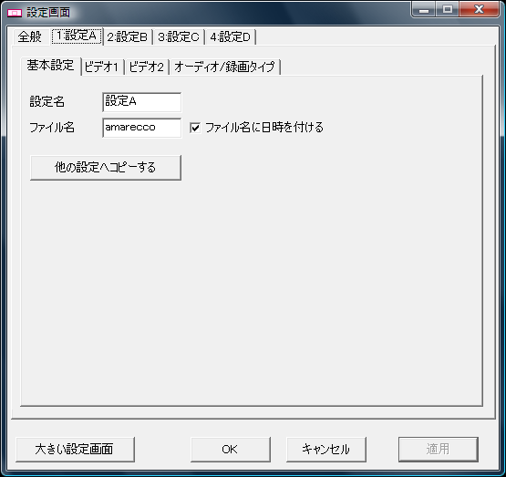 タブ内の設定を変更した場合は、適用またはOKボタンをクリックしないと他のタブ表示に移れません。