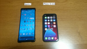 Xperia 1は如何に細長いかがわかります。私の場合は、iPhone 12 miniが実用的なサイズです。