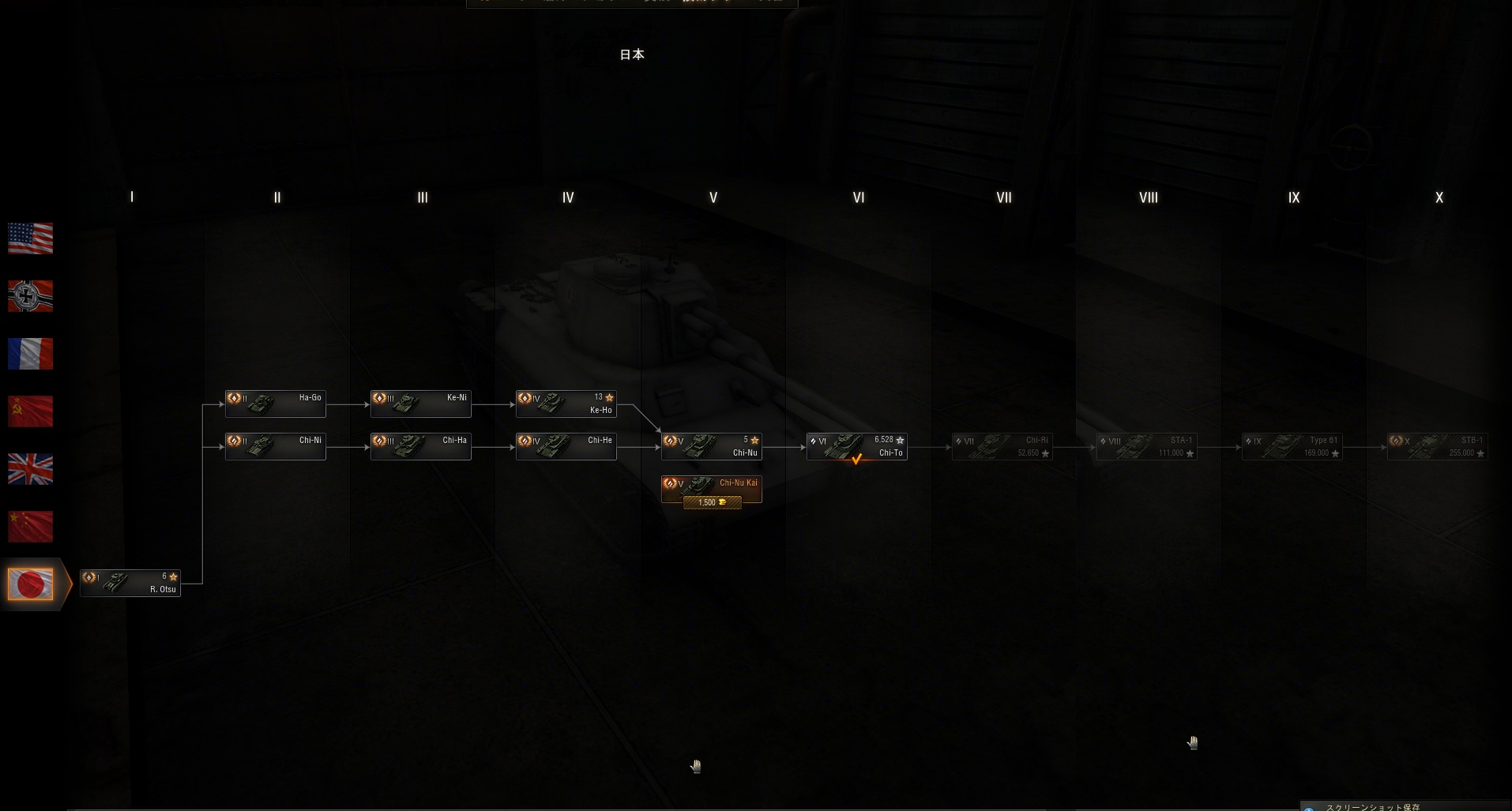 Type4 Chi-To(Tier6)まで研究を進めゲットしましたが、この先も中戦車なので、一時使用をやめて、ドイツの戦車でプレイしています。