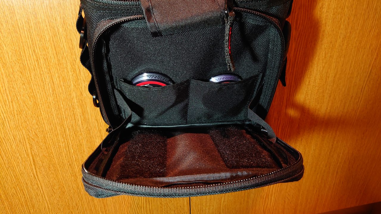写真は、フロントポケットの内ポケットにリーダースプールを収納した例です。