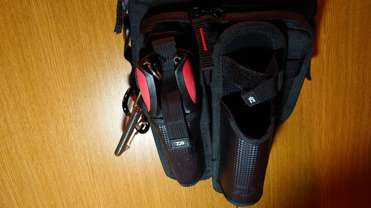 ほかにも、モバイルホルダーを装着すればワームパッケージなどをある程度の数収納できるようになります。(参考 当記事の1枚目の写真)