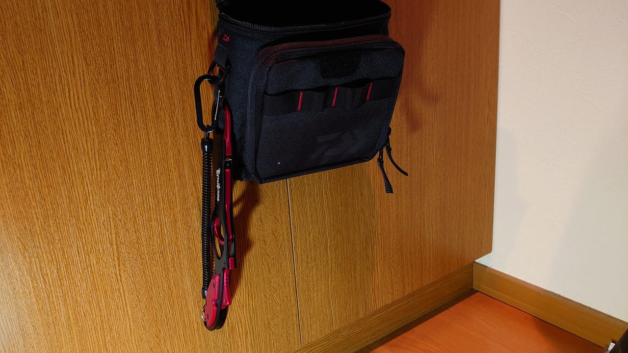 プライヤーホルダーやロッドホルスターなどはベルトホルダーが縦についているのでフロントポケット側のベルトループが使えますが、サイドのベルトループは使えません。