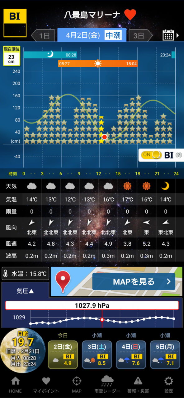 au版タイドグラフの時は海の状態と情報が一致していたように思いますが、今のバージョンはいまいちよくわかりません。