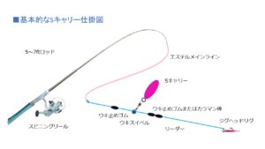 今回は、どちらかというとジグヘッドリグ単体のタックルのままで最小限の変更でちょっと遠投ができればというもので、Sキャリーを試してみました。