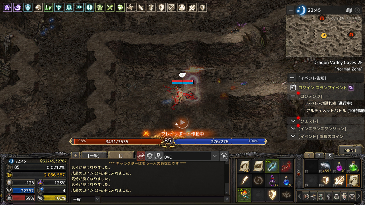 PSS(プレイサポートシステム)で自動狩りしているので戦闘には影響がないようです。