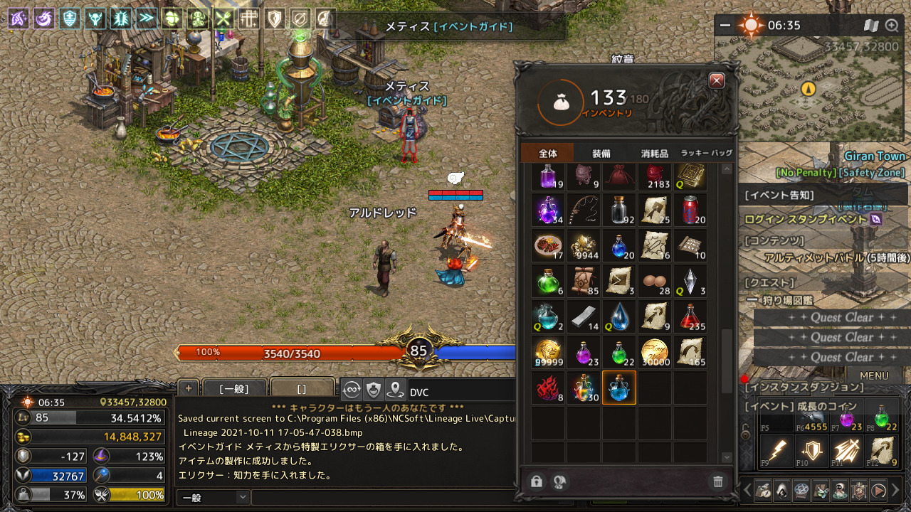 エリクサー製作券をもらったので製作してみました。
