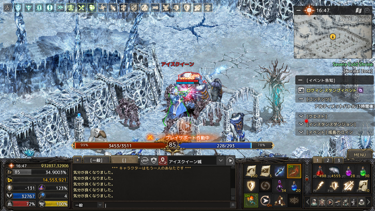 たまに、アイスクイーン城へ行ったりして火炎の気を消費するようにしています。