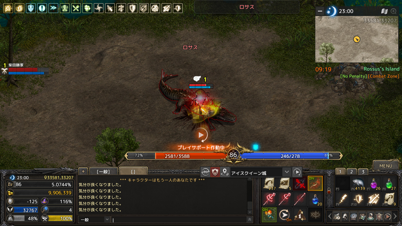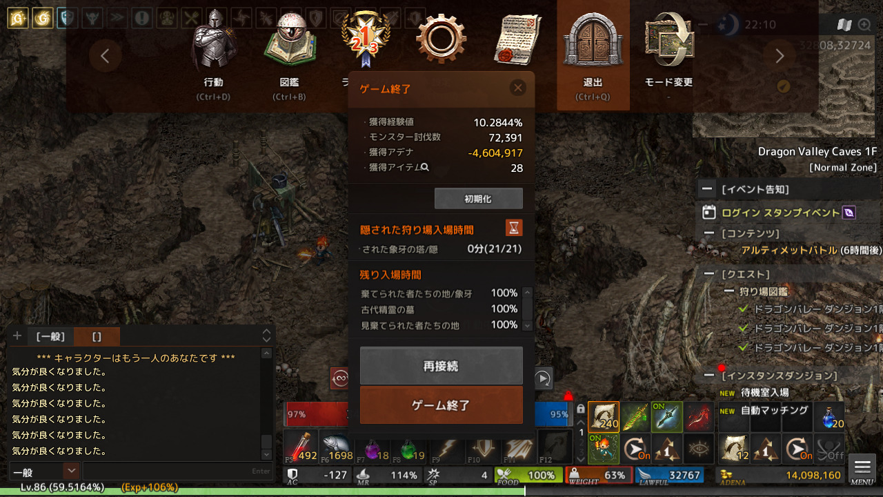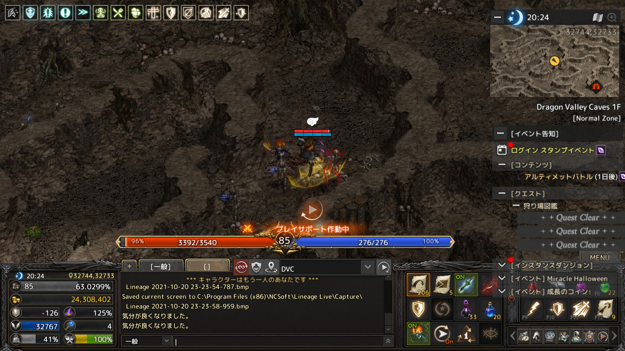 2020年8月22日にLv84になり、その後はこのまま狩りをすると破産するのがわかっていたのでログインせず。戦場の支配者アップデートで復帰後、PSS狩りを継続し着々とレベルアップしています。
