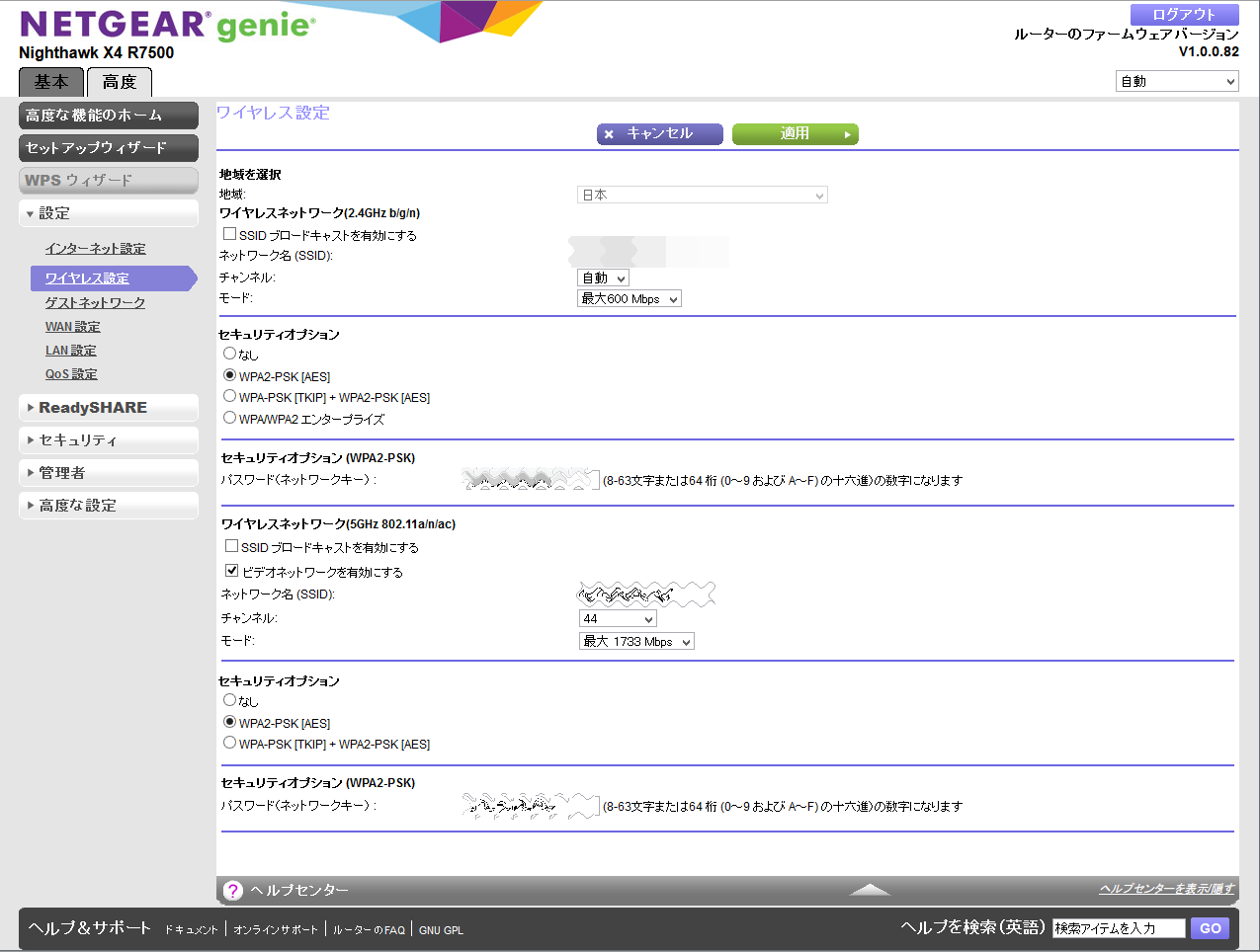 とりあえず、2.4GHz帯と5GHz帯どちらもWPA2-PSK(AES)でいけそうです。