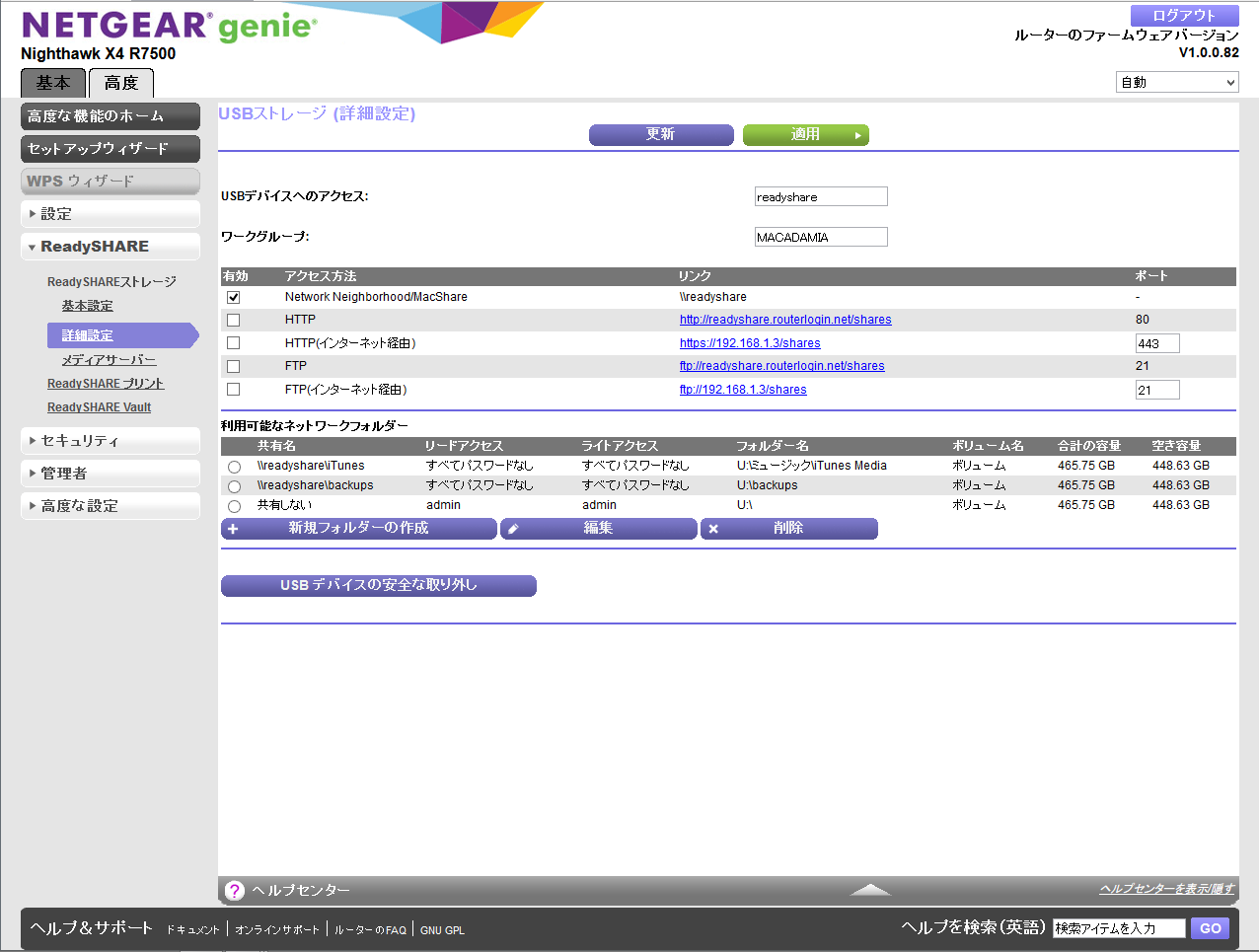 デフォルトの設定を編集して、iTunes用とbackup用のフォルダをそれぞれ共有できるようにしました。